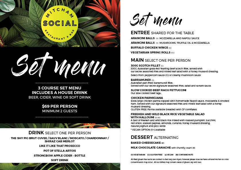 Our Social 3-Course Set Menu has it all for just $69 per person!